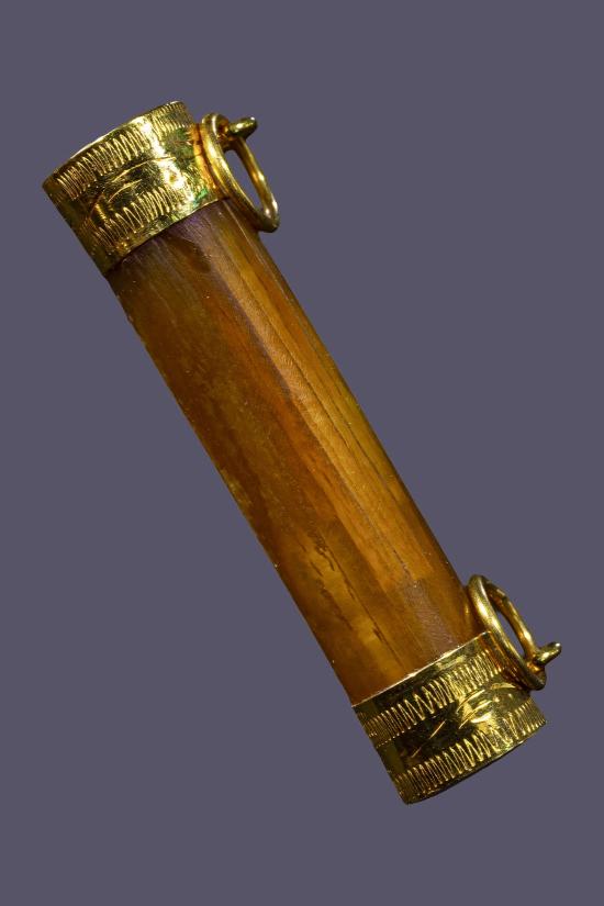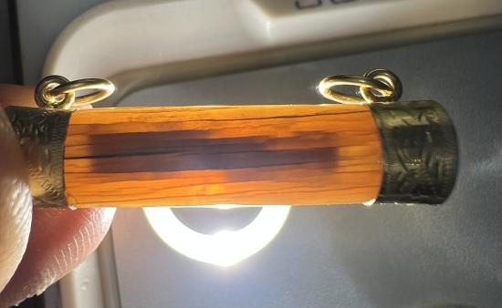 ตะกรุดงาแกะ สอดใส้ตะกรุด มีจารบางๆ เลี่ยมทองคำแท้