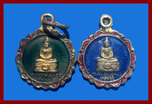 2เหรียญ+100+เหรียญหลวงพ่อโสธร พิมพ์ดอกบัวบาน กะไหล่ทองลงยา 2 สี พศ.2528 |