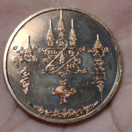 เหรียญตั้งบ้านตั้งเมือง หลังยันต์มหาอริยโสฬจใหญ่(ยันต์ฐานนคร คุุ้มครองหนุนดวงชะตาตั้งบ้านตั้งเมือง)หลวงพ่อเล็ก วัดท่าขนุน อฐิษฐานจิตปลุกเสก |