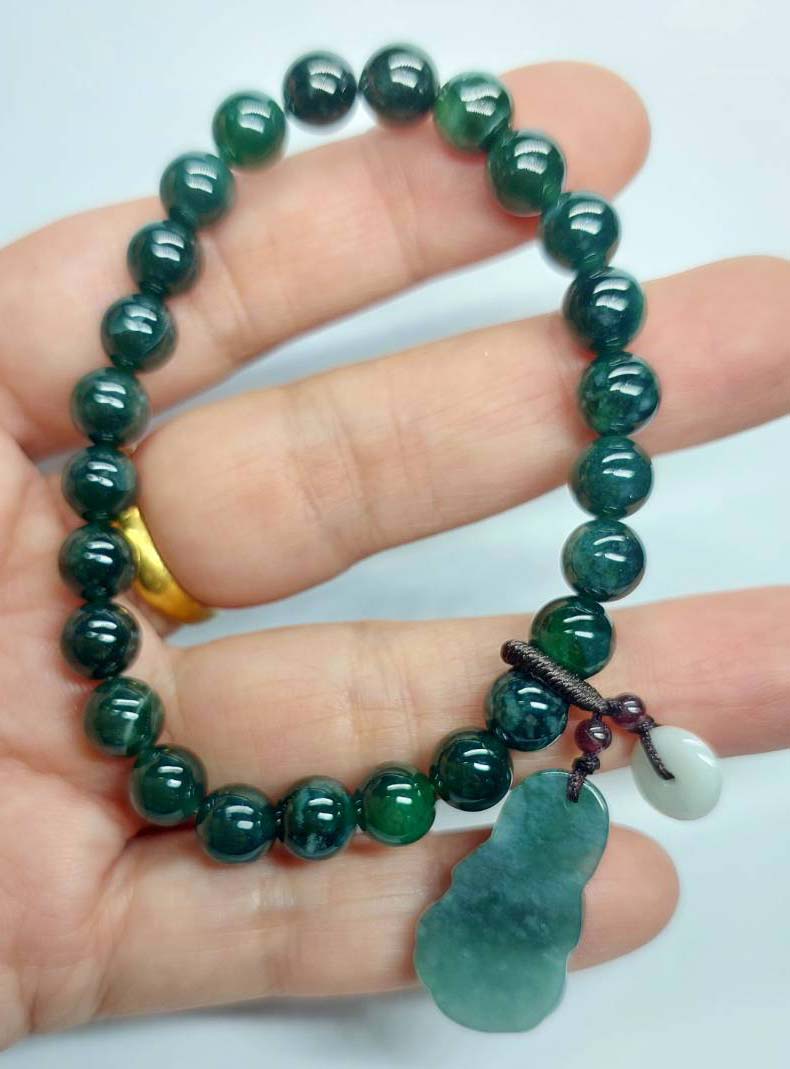 ***วัดใจ***สร้อยข้อมือ หยกจักรพรรดิ์ พร้อมจี้ เม็ด 8 มิล สวยๆ |