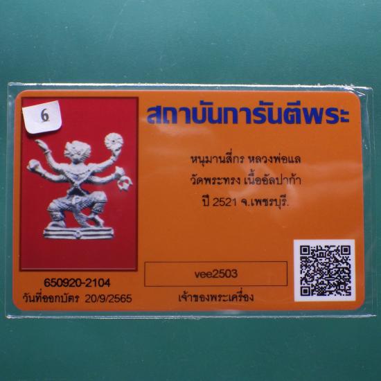 หนุมานหล่อโบราณ 4 กร เนื้ออัลปาก้า หลวงพ่อแล วัดพระทรง จ.เพชรบุรี ปี 2521....6.. (69.2.12