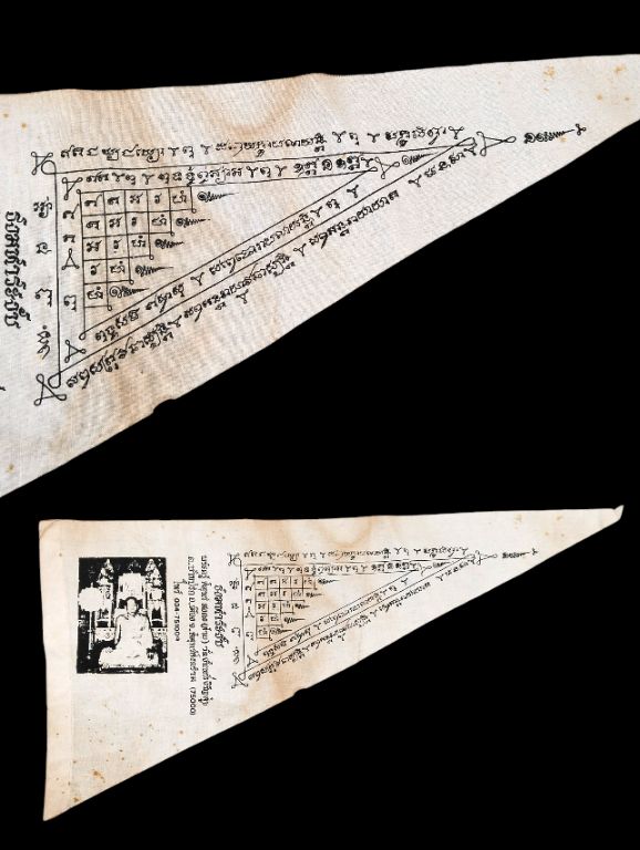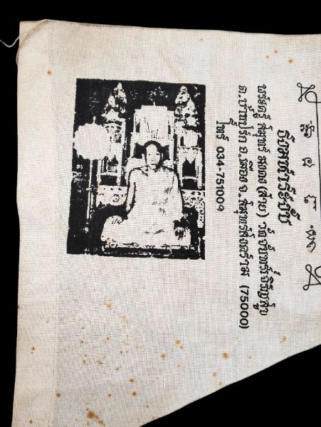 ผ้ายันต์(มหาระงับ)ชายธง หลวงพ่อสาย วัดจันทร์เจริญสุข สมุทรสงคราม..ขนาด26*53 ซ.ม สวยเดิมๆ หิ้งๆ