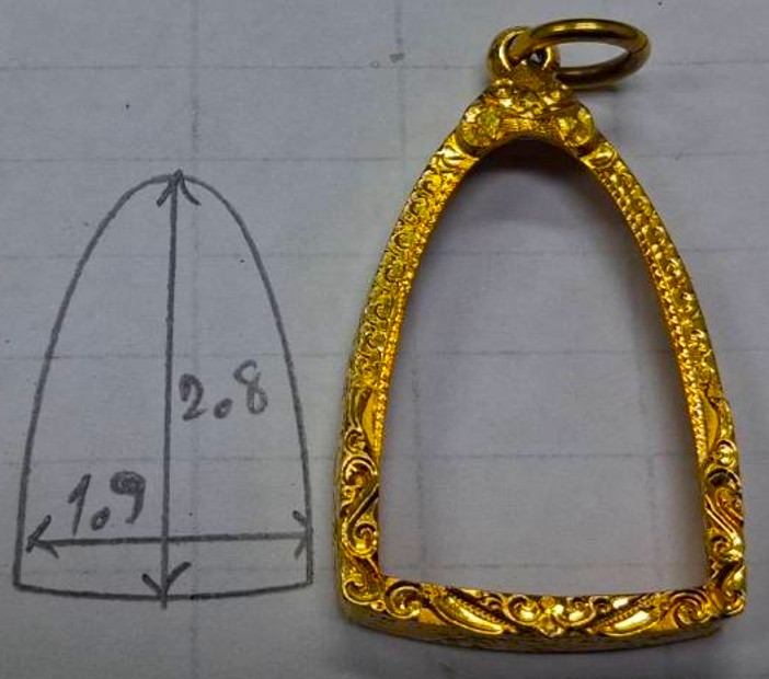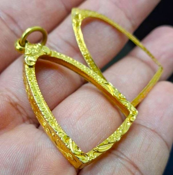 กรอบทองมือสอง ใส่พระกริ่ง พระชัย รูปหล่อ เนื้อดิน หรืออื่นๆทั่วไปที่ไกล้เคียง หน้าจอกว้าง 1.9 ซม., สูง 2.8 ซม. น้ำหนัก 4.34 กรัม เคาะเดียว