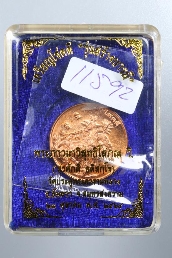 เหรียญโชคดี พระมหาสุรศักดิ์ วัดประดู่พระอารามหลวง อัมพวา เนื้อทองแดง |