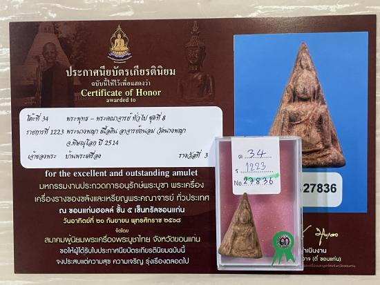 สร้างปี 2514 พิธีใหญ่ สภาพสวย สมบูรณ์ ไม่หักไม่ซ่อม รับประกันพระแท้ ดูง่าย ใบประกาศรางวัลที่3