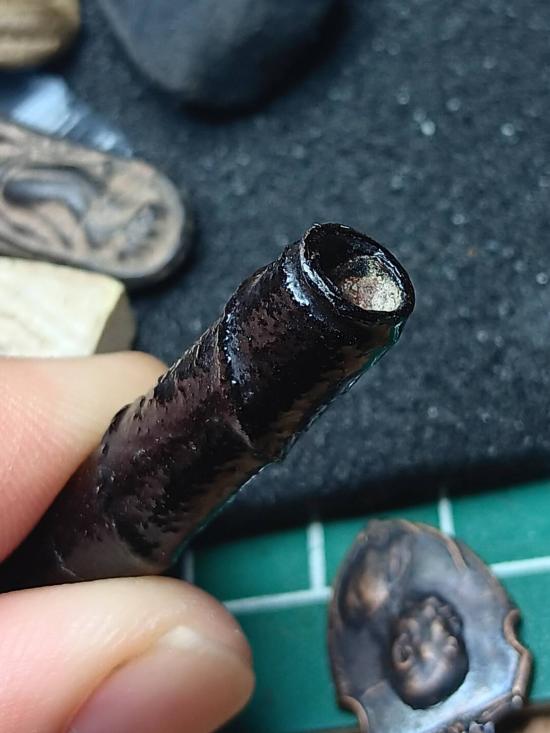 วัดใจ ตะกรุดไม่ทราบที่ ถักเชือก พอกผง ลงรัก ขนาด 2 นิ้ว เอกลักษณ์คล้ายๆปู่หมุน วัดซับลำใย |