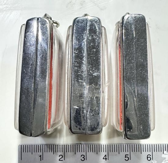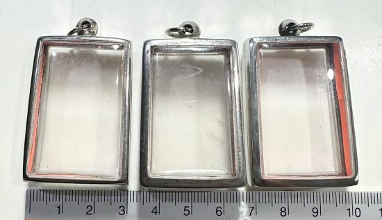 ตลับมือสองสแตนเลสทรงสี่เหลี่ยมใส่สมเด็จทั่วไปได้ 3 ใบแบบเปิดหน้า-หลังขนาด 4 x 3 ซม. |
