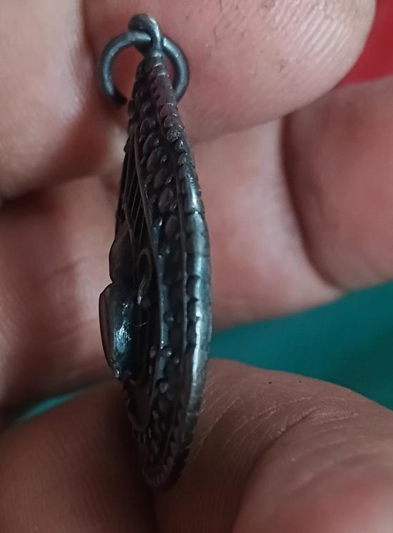 เหรียญเนื้อเงินเก่าไม่รู้ใครจัดสร้างฝังพลอย1เม็ด |