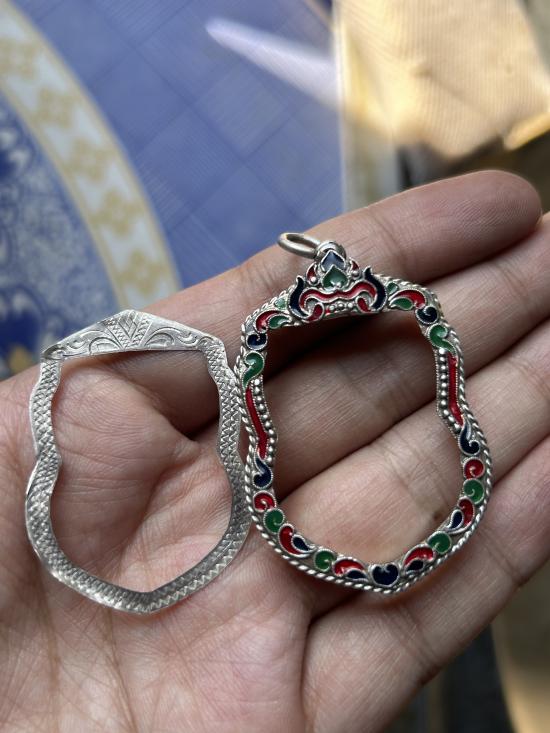 เคาะเดียว..กรอบเงินลงยา สวยใช้ได้ปกติ หน้าจอ สูง3.5 ด้านกว้างสุด 2.7 หนัก7กรัม