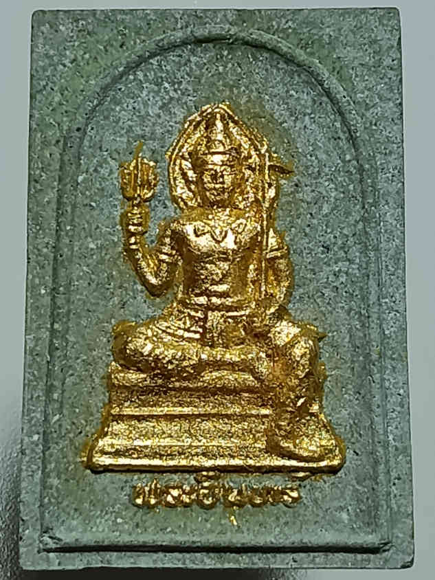 สมเด็จพระอินทร์ เนื้อผง สีเขียวเหนี่ยวทรัพย์ ปัดทองเดิมๆ หายาก สร้างขึ้นปี พ.ศ.2538 รุ่นสุริยุปราคา ด้านหน้าเป็นรูปพระอินทร์ ด้านหลังเป็นราหู หลวงปู่ปลุกเสกให้วันที่เกิดสุริยุปราคาสุดเข้มขลัง สภาพสวยเดิม ไม่ผ่านการใช้ สายราชการหรือเอกชนที่ต้องปกครองคนไม่ควรพลาดครับ