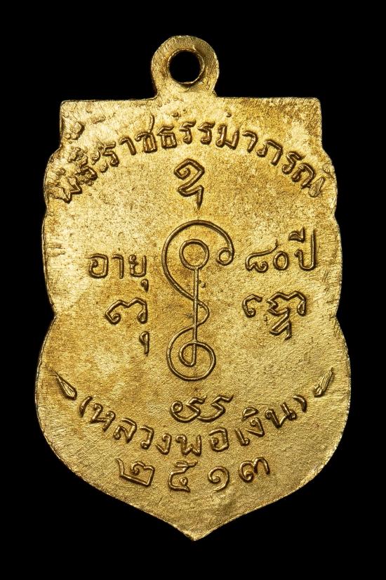 ด้านล่าง: ระบุชื่อ "หลวงพ่อเงิน" และปีที่สร้างคือ "๒๕๑๓"