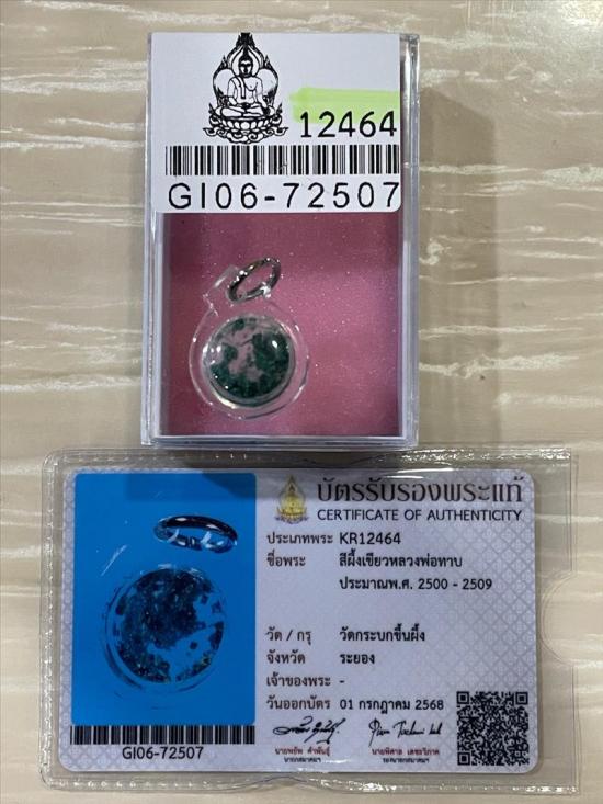 (เคาะแดง2200) +บัตรสมาคม สีผึ้งเขียวหลวงพ่อทาบ วัดกระบกขึ้นผึ้ง