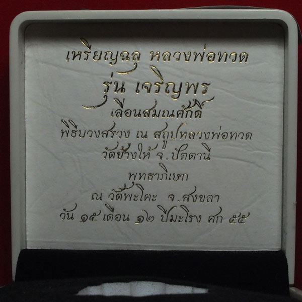 "วัดใจ" หลวงปู่ทวด เจริญพร เลื่อนสมณศักดิ์ วัดพะโคะ เหรียญเสมาฉลุ เนื้อนวะฯแก่ทองคำองค์เงิน หมายเลข ๗๕๐ สภาพสวยพร้อมกล่องเดิม