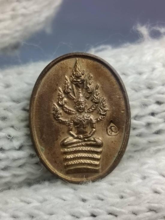 ปรกเม็ดแตง หรือเหรียญนาคปรกไตรมาส พิมพ์เล็ก เนื้อทองแดง หลวงพ่อสาคร วัดหนองกรับ ระยอง สร้าง ปลุกเสก ปี ๒๕๕๑ มีกล่อง |
