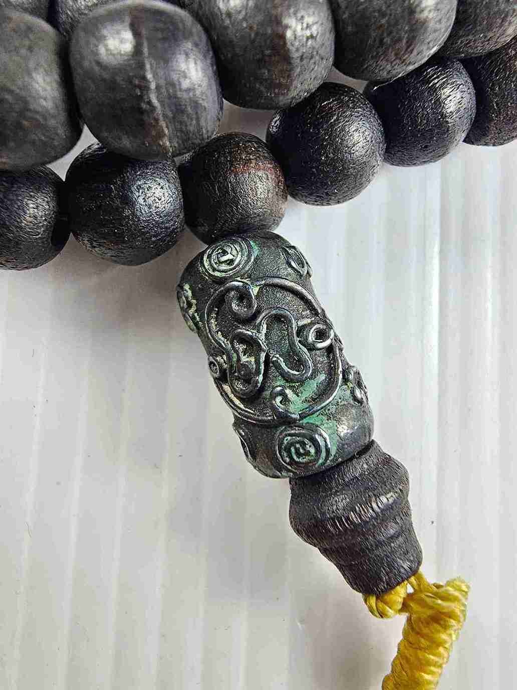 ประคำนเรศวรปราบหงสา หลวงพ่อชำนาญ สร้างจากไม้ประดู่สีดำ ลูกยอดเป็น ลูกสะกดยันต์ยุ่งเนื้อเมฆพัด ซึ่งเป็นหนึ่งในตำราพิชัยสงคราม