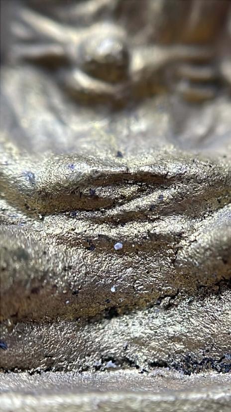 ลักษณะเฉพาะ: เนื่องจากเป็นเนื้อโลหะทองผสมแบบหล่อโบราณ ทำให้มักจะมีคราบขี้เบ้าและคราบเขียวน้ำฝนจับตามผิวพระ |
