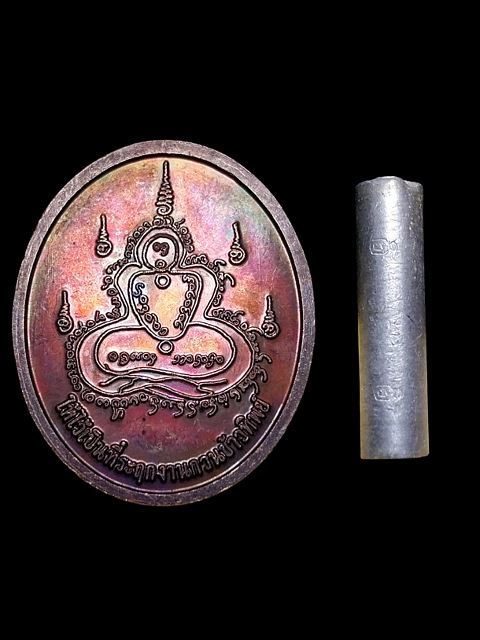เหรียญที่ระลึกงานกวนข้าวทิพย์+ตระกรุดทางซิลเวอร์เลค หลวงพ่อชาญ วัดใจ