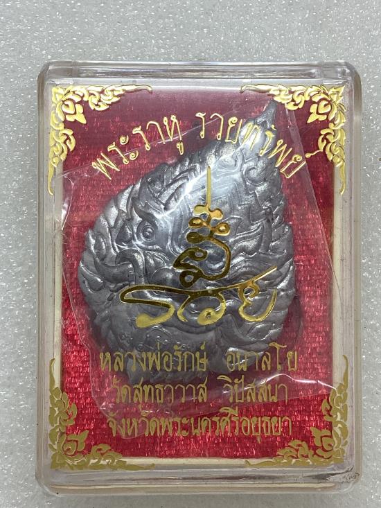 เหรียญปั้ม พระราหูรวยทรัพย์ หลวงพ่อรักษ์ วัดสุทธาวาสวิปัสสนา จ.พระนครศรีอยุธยา เนื้อตะกั่วอวน กล่องเดิม ( แจกในพิธี ) |
