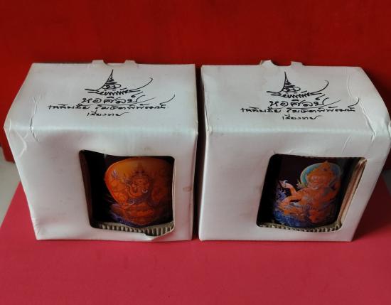 ขออนุญาติท่านอาจารย์เฉลิมชัยโฆษิตพิพัฒน์ขอเปิดแบ่งปันแก้วน้ำพ่อปู่พระพิฆเนศจำนวน2ใบ2แบบ2สีสภาพแก้วสวยงามไม่ผ่านการใชครับ(กล่องโดนฝนมาครับดูให้ชอบก่อนประมูลนะครับแก้วสวยครับ) |
