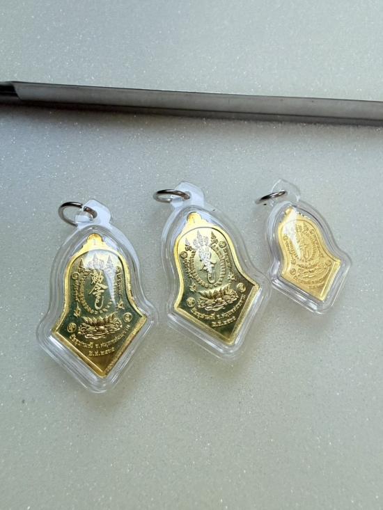 **วัดใจ3เหรียญ** กันชง จำปี (พิมพ์ใหญ่)ชนวนกะหลั่ยทองลงยาแดง2 ฝาบาตร1 หลวงพ่ออิฏฐ์ วัดจุฬสมณี(พร้อมกล่อง)