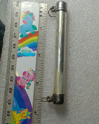 แบ่งปัน...ตะกรุด เนื้อเงิน แท้ไม่ทราบที่ (ในตะกรุดมีเครือสาวหลง) 3.5 นิ้ว