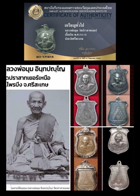 เหรียญหน้าบันศาลาการเปรียญ เนื้อเงิน ปี2515 บล็อกนิยม 9กา หลวงพ่อมุม วัดปราสาทเยอร์เหนือ จ.ศรีสะเกษ ปี15 "เนื้อเงิน" หลังไม่มีจาร สวยๆ เดิมๆ ไม่ผ่านการใช้ เจ้าของเดิมเก็บสภาพผิวได้ดีมาก จำนวนการสร้างน้อยหายากสุดๆ พิธีปลุกเสกยิ่งใหญ่ จัดเป็นเหรียญที่ได้รับความนิยมเป็นอย่างมากของหลวงพ่อมุม มีประสบการณ์มากมาย