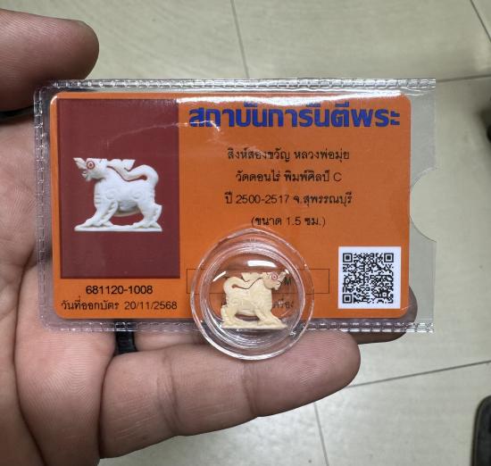 -สิงห์ งาแกะ หลวงพ่อมุ่ย วัดดอนไร่ จ.สุพรรณบุรี ขนาดประมาณ 1.5 CM เลี่ยมกันน้ำเก็บผิวไว้ให้แล้วครับ มาพร้อมบัตร รับรอง คุ้มๆเลยครับ