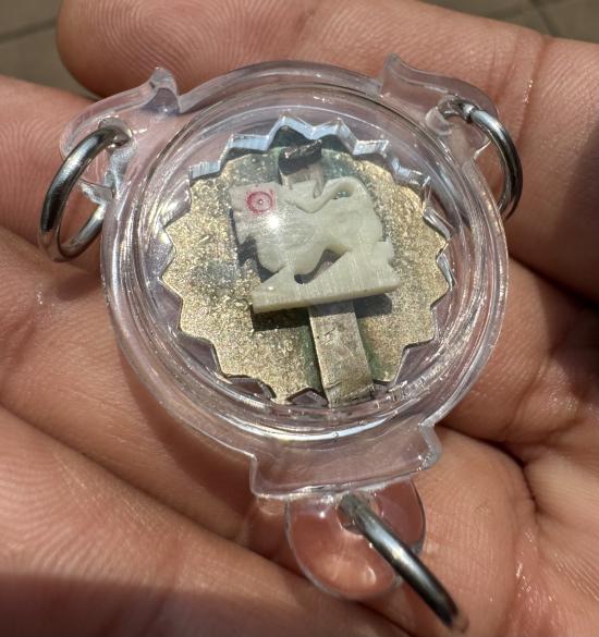เคาะเดียวแดง แหนบ (ตัดก้าน) พิมพ์หลังไม่มียันต์ หลวงพ่อมุ่ย วัดดอนไร่ (ด้านหลัง แปะสิงห์ หลวงพ่อปั่น วัดเนินมหาเชษฐ์ เหลนแท้ๆหลวงพ่อมุ่ย) |