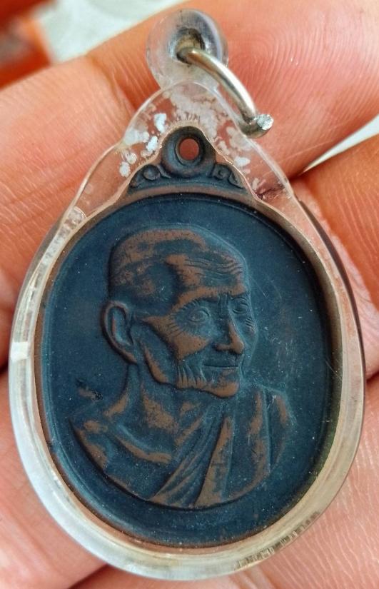 เหรียญหลวงพ่อเต๋ คงทอง วัดสามง่าม รูปไข่หันข้าง ตอกโค้ด ที่ระลึกงานผูกพัทธสีมา ปี 2518 เนื้อทองแดงรมดำ