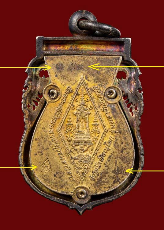 เนื้อเงินลงยาสีน้ำเงิน หลังแผ่นทองไมคร่อน