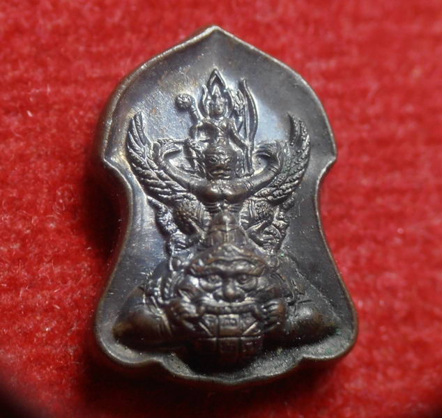 พระนารายณ์ทรงครุฑประทับราหู มีพุทธานุภาพ ธัมมานุภาพ สังฆานุภาพ เสริมดวงชะตาบารมี เพิ่มพูน ทรัพย์สินเงินทอง ความสุขความสบาย มังมีศรีสุข ลาภผลพูนทวี ร่ำรวยเป็นมหาเศรษฐีตลอดกาล พร้อมทั้งขจัดปัดเป่าสิ่งที่เป็นอัปมงคล ป้องกันเสนียดจัญไร ป้องกันภูตผีปีศาจ แคล้วคลาดปลอดภัย จากภัยพิบัตินานัปการ พระราหูอันเป็นพระเคราะห์เทวราชคู่มิตรแห่งพระเสาร์ คอยส่งเสริมซึ่งกันและกัน พระราหูจะคอยจับกินสิ่งไม่ดีทั้งปวงและเป็นที่ยำเกรงแก่หมู่มารทั้งหลายไม่ ให้กล้ำกรายแต่ทว่า ให้โชคลาภทรัพย์สินเงินทอง