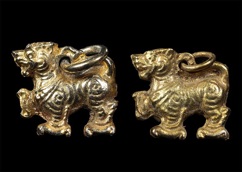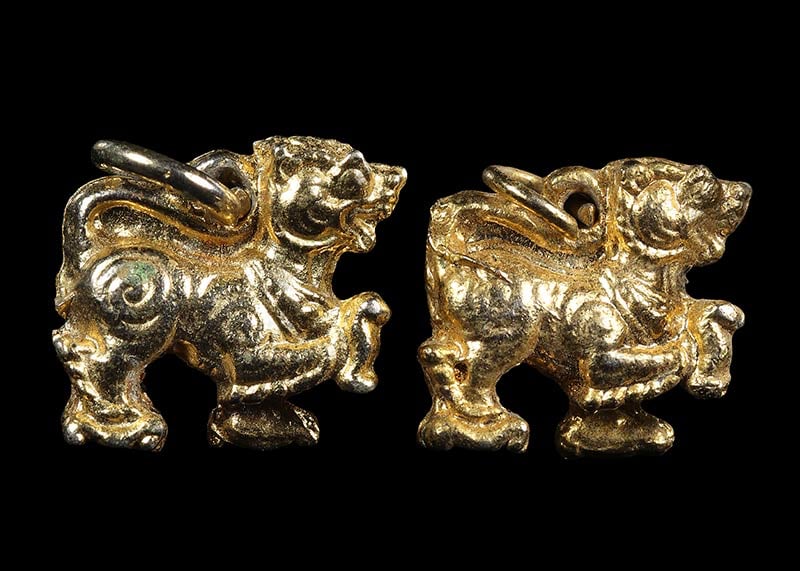100 / สิงห์มหาอำนาจเนื้อตะกั่วชุบทอง หลวงพ่อกวยวัดโฆสิตาราม สวยเดิมๆทั้ง 2 ตัวครับ |