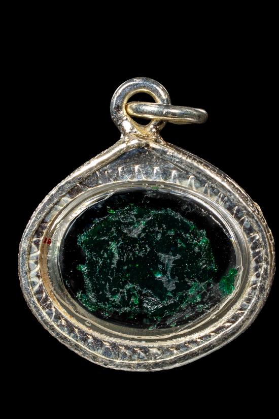 (เคาะแดง1900) +ติดที่1สมาคม สีผึ้งเขียวเลี่ยมเงิน หลวงพ่อทาบ