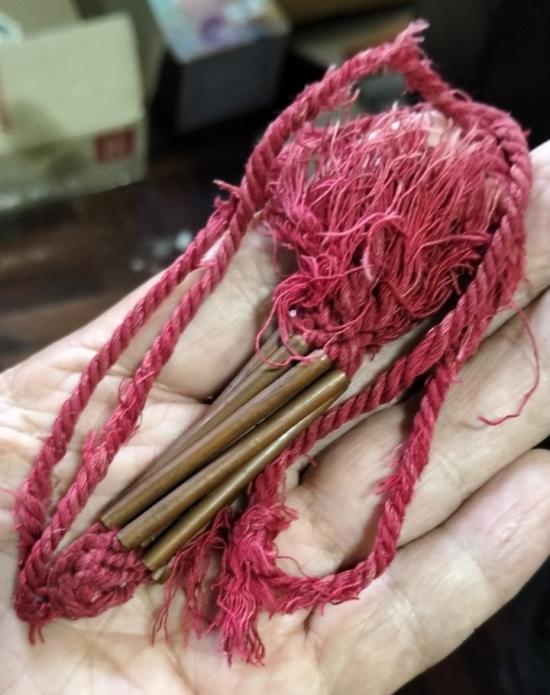 ผมได้มาจากคนเฒ่าข้างบ้านแกได้มาสมัยหนุ่มๆ ผมได้มาร่วม 30 ปีแล้วครับ น่าจะมีอายุไม่ต่ำกว่า 50 ปีสภาพเชือกขาดยุ่ยตามอายุครับ |