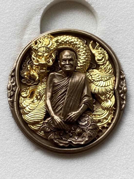 เคาะเดียวแดง หลวงปู่บุดดา รุ่น บารมีไตรมงคล เนื้อ สัมฤทธิ์มังกรหงส์ชุบทอง