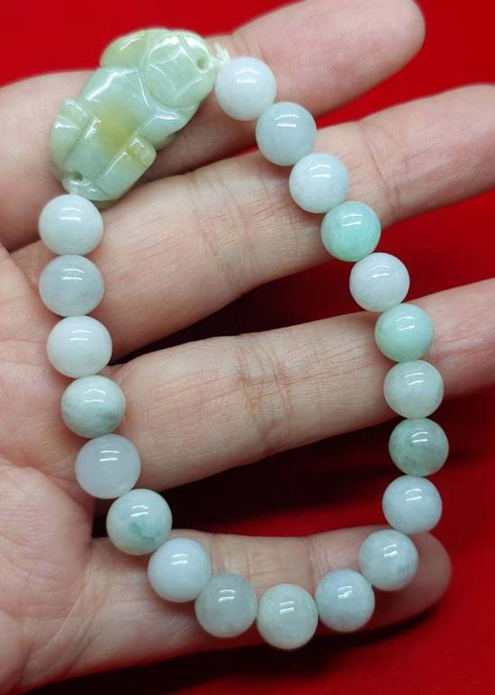 ***วัดใจ***สร้อยข้อมือปี่เซี๊ยะ หินหยกพม่า สีพาสเทล (Pastel Jade) 8 มิล