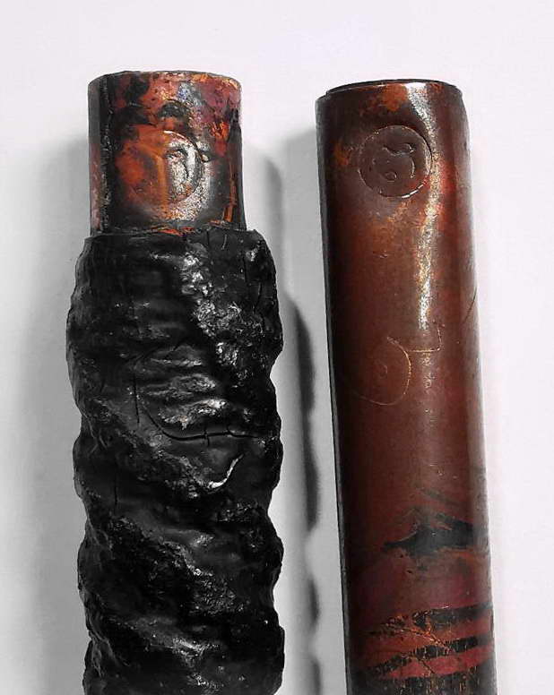 ( เคาะเดียว 2ดอก ) ตะกรุด 2ดอก เปลือย + ลงรัก ตะกรุดโทนมหาอำนาจ โค๊ดนะกลับ ขนาด 4นิ้ว หลวงปู่ทิม วัดละหารไร่ ปลุกเสก ออกวัดไผ่ล้อม ปี 2513 |