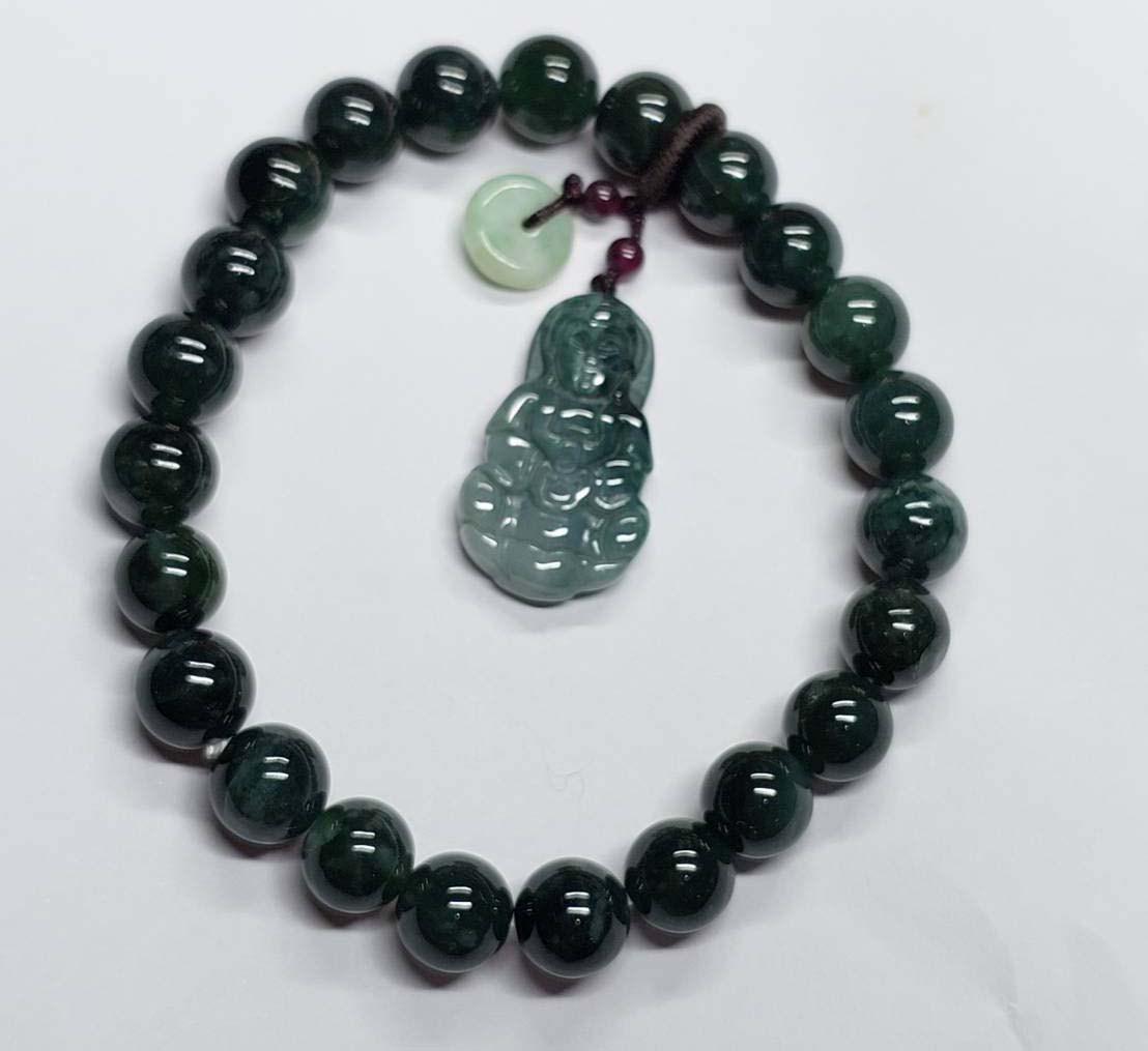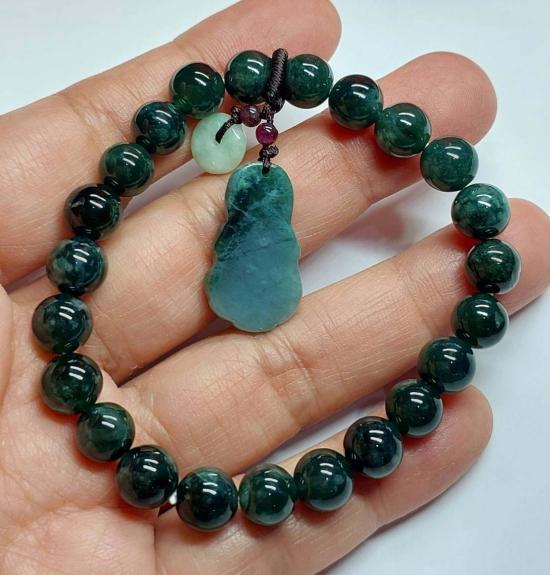 ***วัดใจ***สร้อยข้อมือ หยกจักรพรรดิ์ พร้อมจี้ เม็ด 8 มิล สวยๆ |