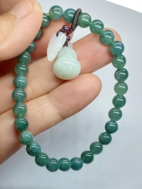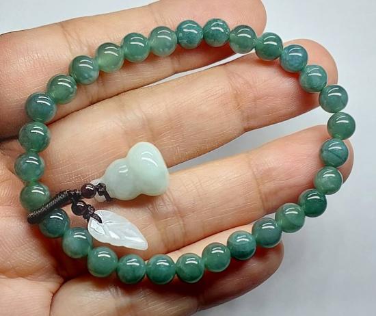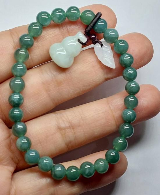 ***วัดใจ***สร้อยข้อมือ หยก พร้อมจี้ เม็ด 6 มิล สวยๆ