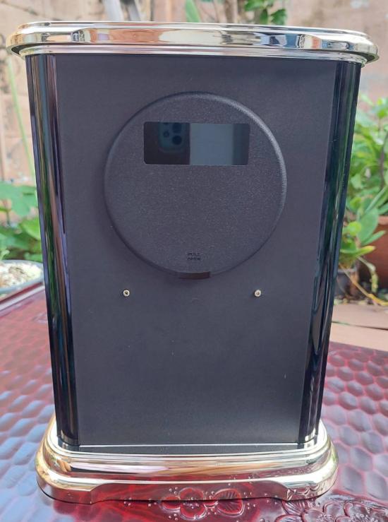ดีไซน์: ตัวเรือนสีทองสลับดำ มีความสูงประมาณ 30 เซนติเมตร โดดเด่นด้วยลูกตุ้มหมุน (Rotating Pendulum)