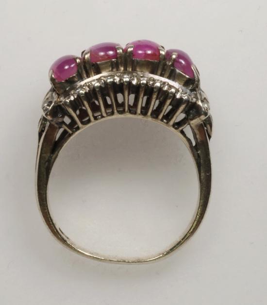 แหวนทับทิมล้อมเพชร ตัวเรือนเงิน 91% น้ำหนักรวม 5.6 กรัม