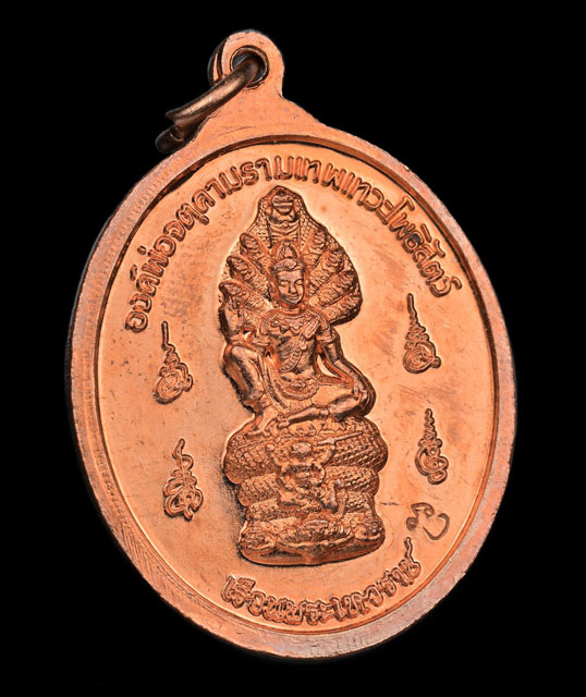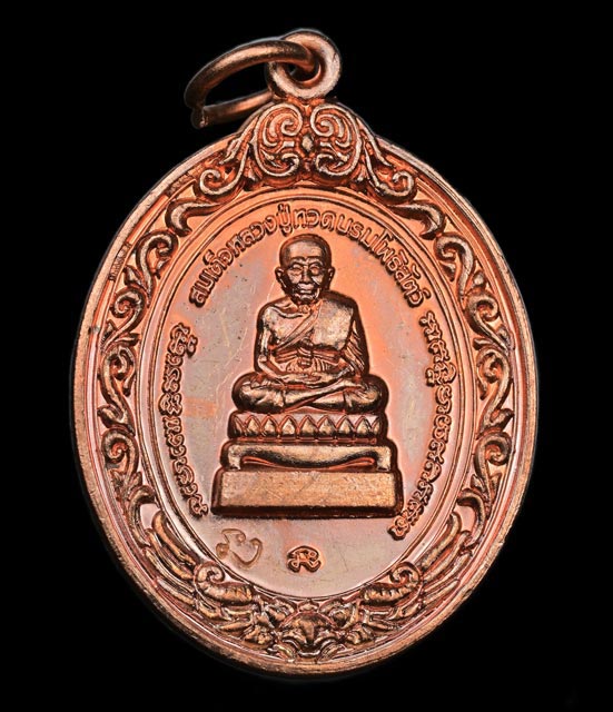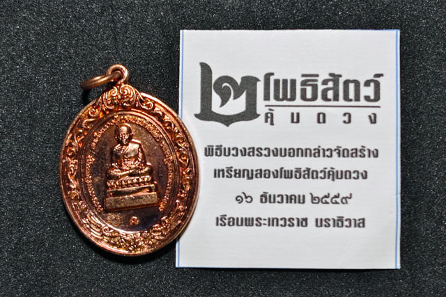 เหรียญหลวงพ่อทวดหลังองค์พ่อจตุคามรามเทพวิหารจังหวัดนราธิวาส ปี 2558 รุ่น 2โพธิสัตว์คุ้มดวง เนื้อทองแดง (แจกเจ้าหน้าที่สามจังหวัดชายแดนใต้)