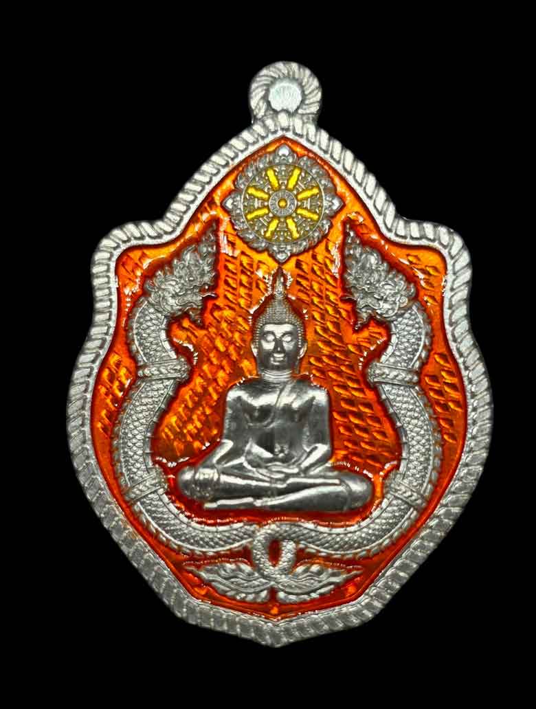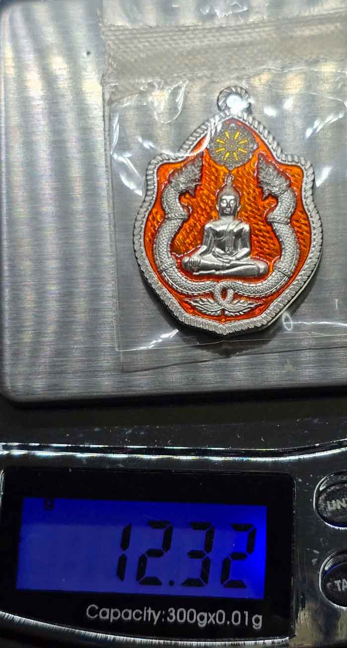 เหรียญเนื้อเงินลงยา วัดวาโย พญานาค เลขสวย ๗๒ นน.เงินประมาณ 12.3 กรัม