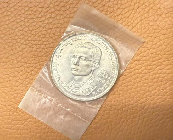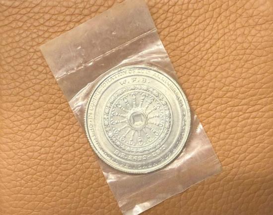 เหรียญเงิน 50 บาท ที่ระลึกองค์การพุทธศาสนิกสัมพันธ์แห่งโลกครบรอบ 20 ปี ในวาระการประชุมองค์การพุทธศาสนิกสัมพันธ์โลก ปี 2514 น้ำหนัก 25 กรัม