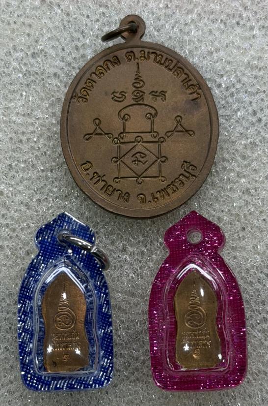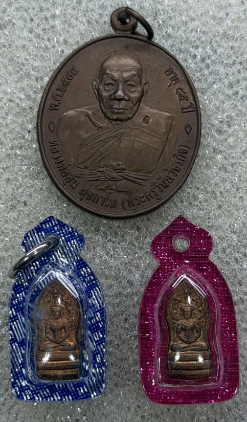 **เคาะเดียวแดง** หลวงพ่ออุ้น 3 องค์ ปรกมะขามรุ่นแรก เหรียญปี2544