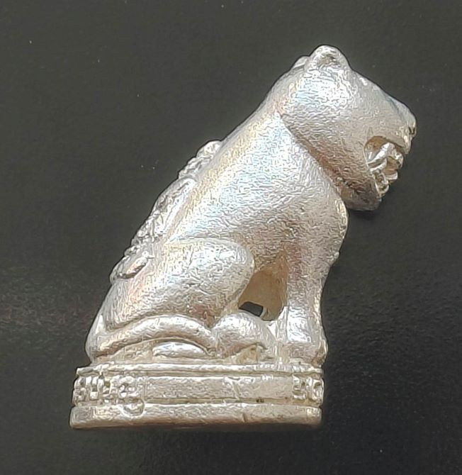 "เสือเนื้อเงินรุ่นแรก" หลวงพ่อชาญ วัดบางบ่อ จ.สมุทรปราการ ปี 2550 ด้านหลังเป็นหลวงพ่อนั่งเต็มองค์ ใต้ฐานตอกโค๊ตยันต์เฑาะว์ สภาพสวยเดิม เป็นเสือรุ่นแรกที่สร้างเนื้อเงิน รับประกันแท้ตลอดชีพ |