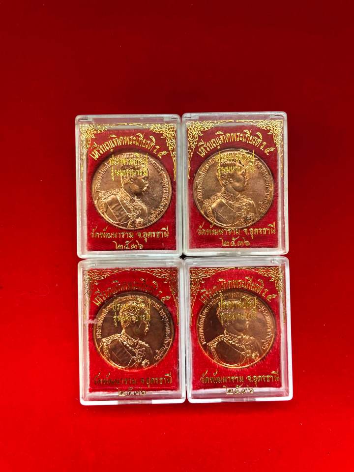 4 เหรียญเทิดพระเกียรติร 5 ประภาสยุโรป ปี2536 เนื้อทองแดงผิวไฟ พร้อมกล่อง