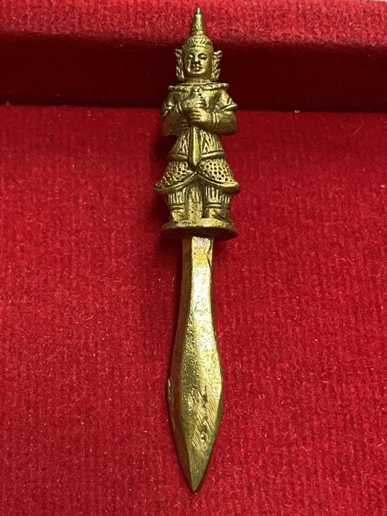พระขรรค์ท้าวเวสสุวรรณ รุ่น พระไตรปิฎก จัดสร้างปี 2544 หลวงพ่อสาคร วัดหนองกรับ เนื้อทองเหลือง ในเล่มมี 2 หน้า หน้าเทพและหน้ายักษ์ สวยเดิม หายาก ซองเดิมจากวัดครบ น่าสะสม! |