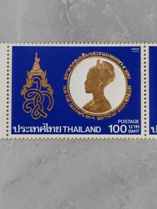 1.สแตมป์ทองคำ พระราชินีครบ5รอบ ปี2535 พิมพ์โดยบริษัท Cartor S.A. ประเทศฝรั่งเศส (ตามที่ปรากฏบนขอบแสตมป์ด้านข้าง)จำนวน2ดวง