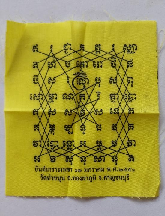 ผ้ายันต์เกาะเพชรหลวงพ่อเล็ก วัดท่าขนุน ปี51สีเหลือง |